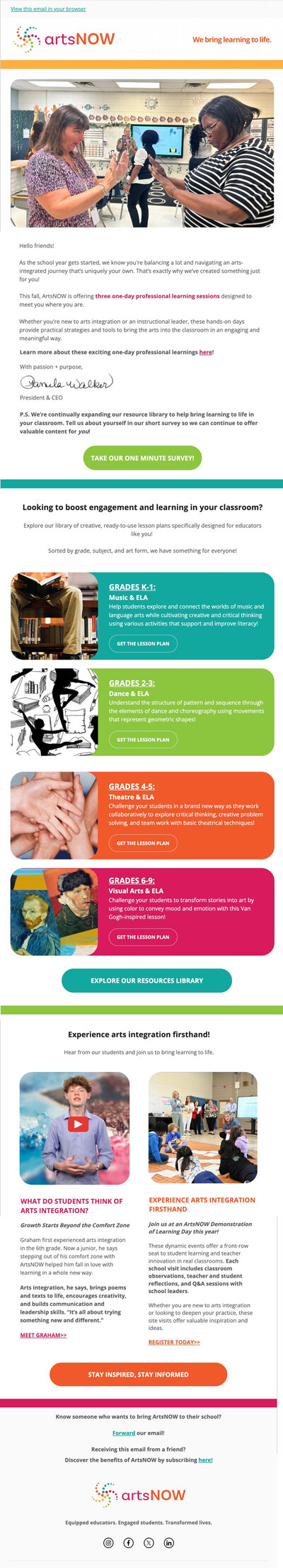 ArtsNOW is an arts education nonprofit that provides customized arts-integration solutions to help educators boost student achievement through creativity.